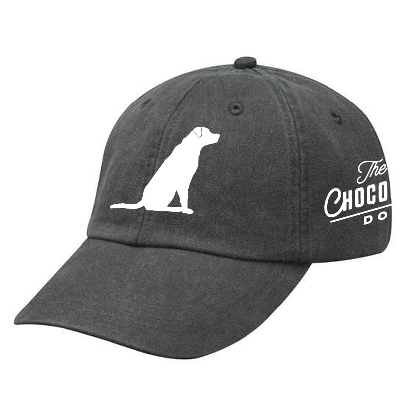 Our perfect basic go-to baseball cap with the sitting dog logo embroidered on the front and “The Chocolate Dog” script embroidered on the left side.